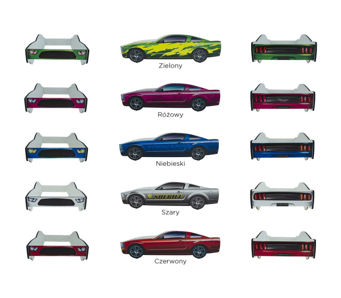 Łóżko dziecięce MUSTANG to marzenie każdego dziecka. Samochody zawsze były ulubionymi zabawkami małych chłopców. Teraz również w łóżku mogą się poczuć jak kierowca auta wyścigowego. Łóżko z płyty w kształcie samochodu, to idealny sposób na stworzenie ciekawej aranżacji pokoju dziecięcego. Decydując się na Łóżko dziecięce MUSTANG nie tylko stawiasz na ciekawy Design pokoju Twojego dziecka, ale również na jakość i wygodę podczas jego snu. Dzięki zastosowaniu najwyższej jakości drewna, profesjonalnej techniki obróbki, a także zachowaniu doskonałej precyzji podczas tworzenia mebli, mamy pewność że łóżko będzie docenione przez wszystkie dzieci. Dzięki zastosowaniu najnowocześniejszej technologii, uzyskujemy na naszych meblach głęboki i wyrazisty kolor, odporny na różnego rodzaju uszkodzenia mechaniczne. Jest to szczególnie ważne, w przypadku mebli dziecięcych, które są szczególnie narażone na wszelkiego rodzaju ubicia i uszkodzenia podczas zabawy maluchów.